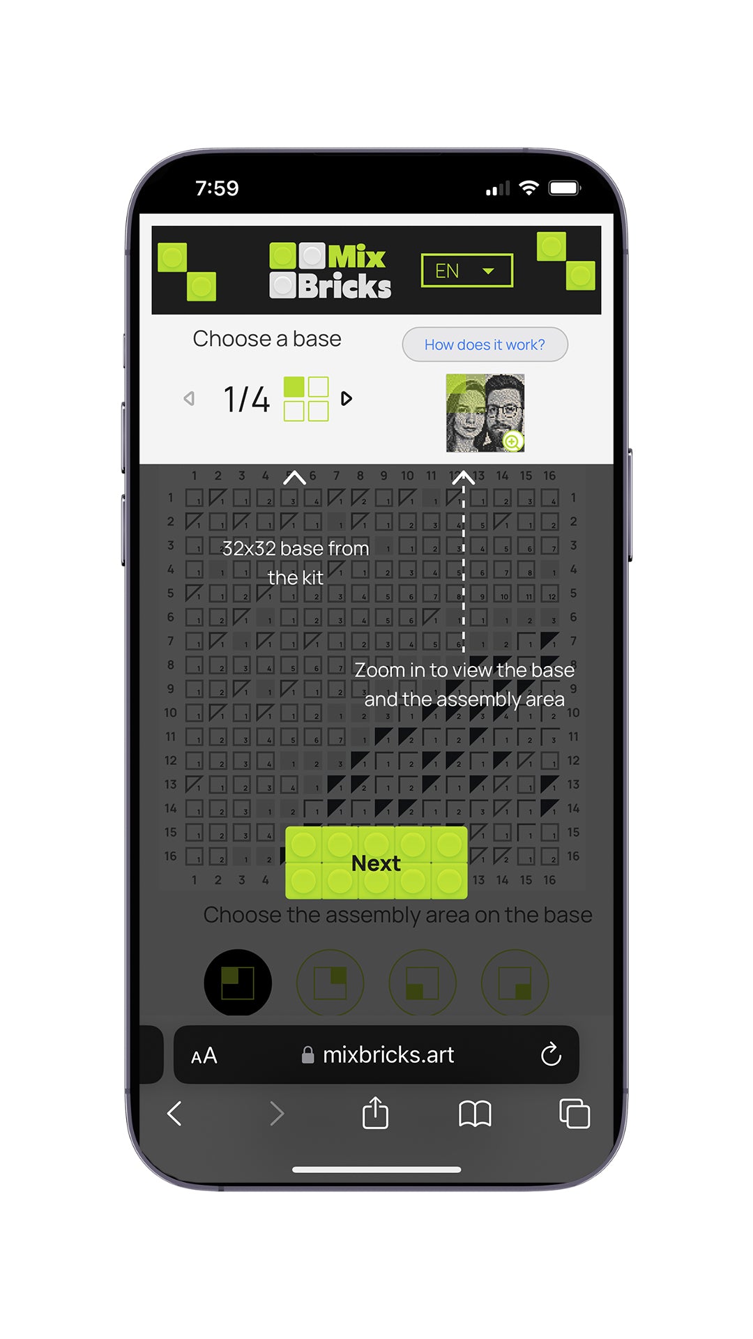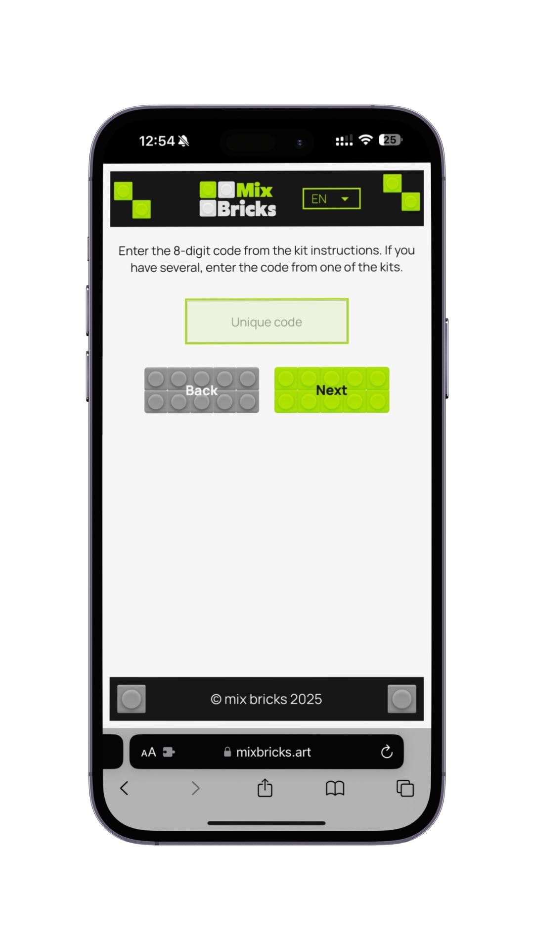 1. Go to mixbricks.art, or scan the QR code from the Unique Let's String code card